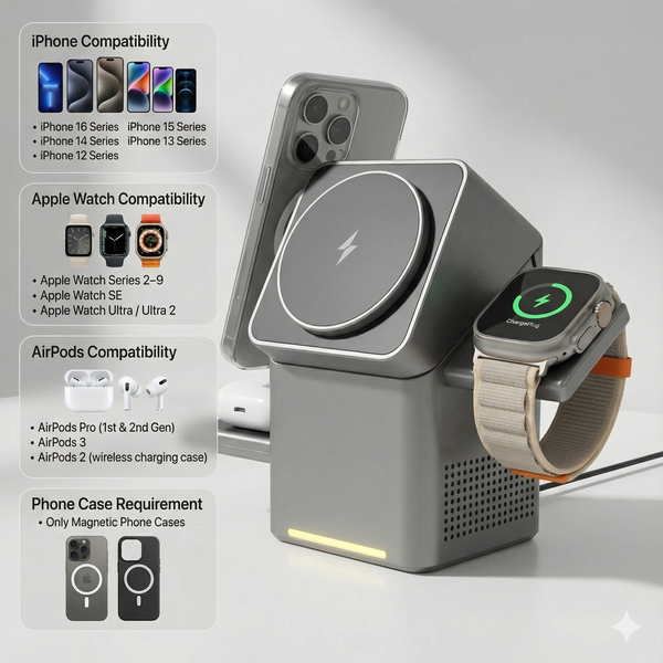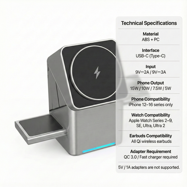 The elegant 3-in-1 solution that replaces cable chaos with instant, effortless charging